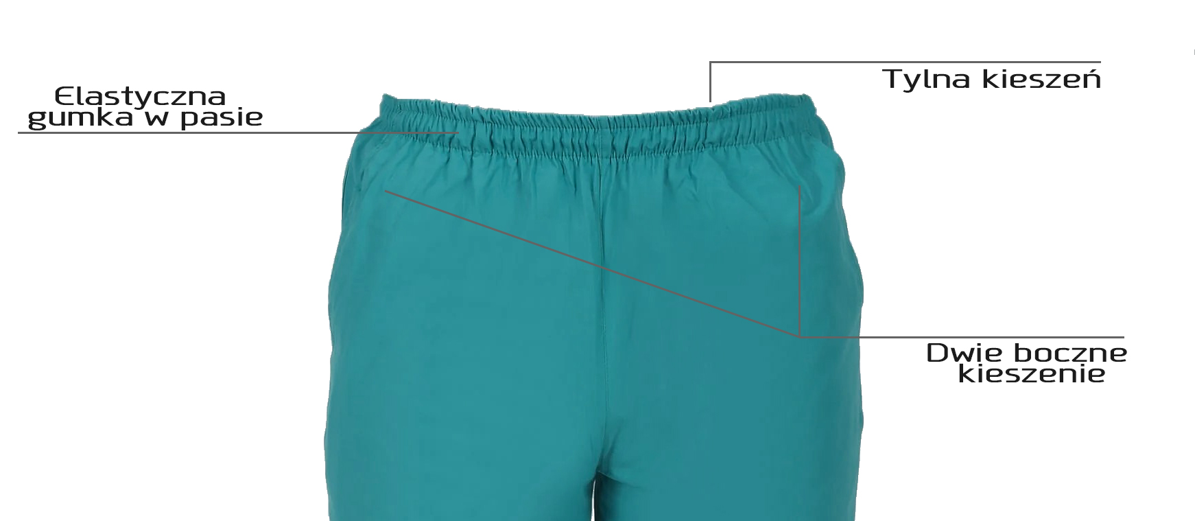 Praktyczne rozwiązanie - Spodnie wyposażone są w funkcjonalne dwie boczne kieszenie oraz jedną tylną, idealne do przechowywania niezbędnych akcesoriów. Elastyczna gumka w pasie gwarantuje idealne dopasowanie do sylwetki.